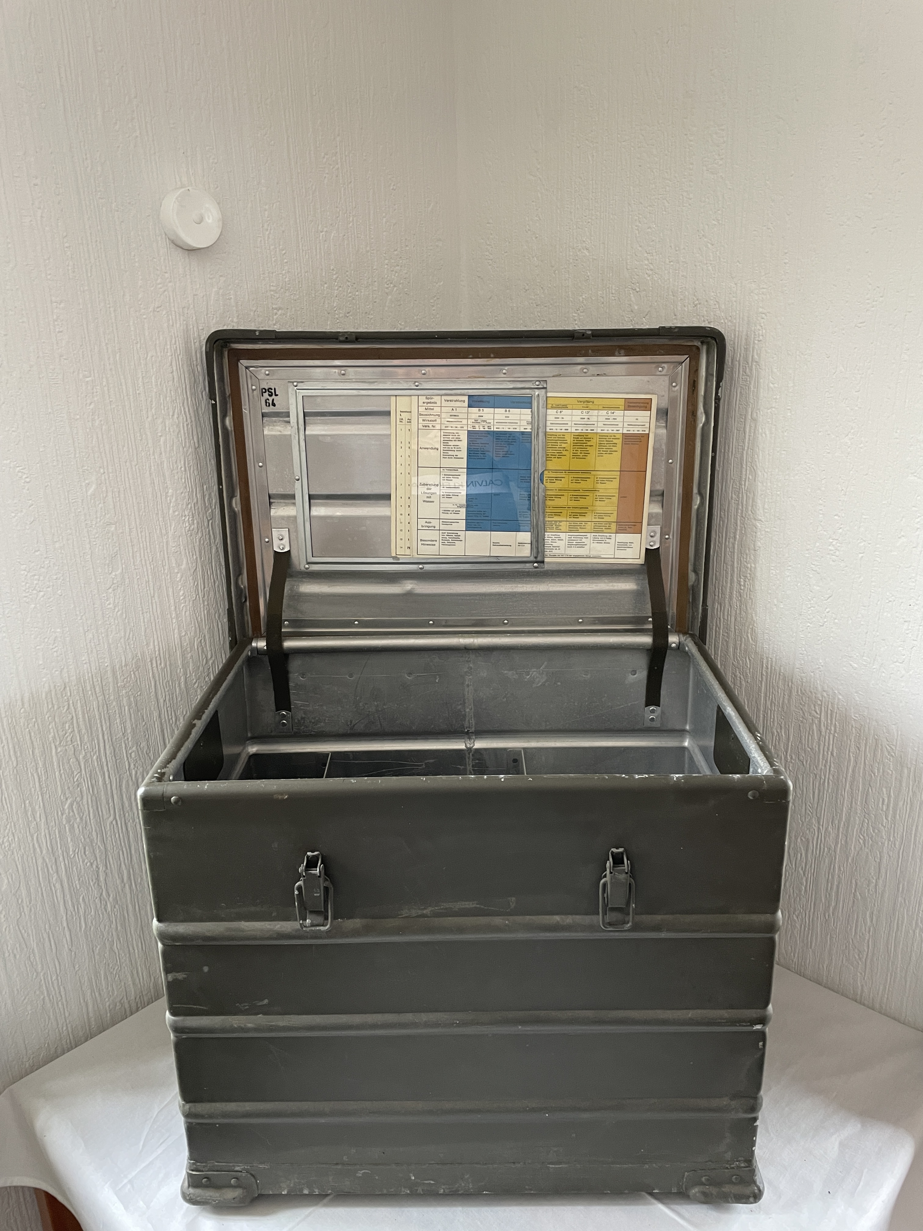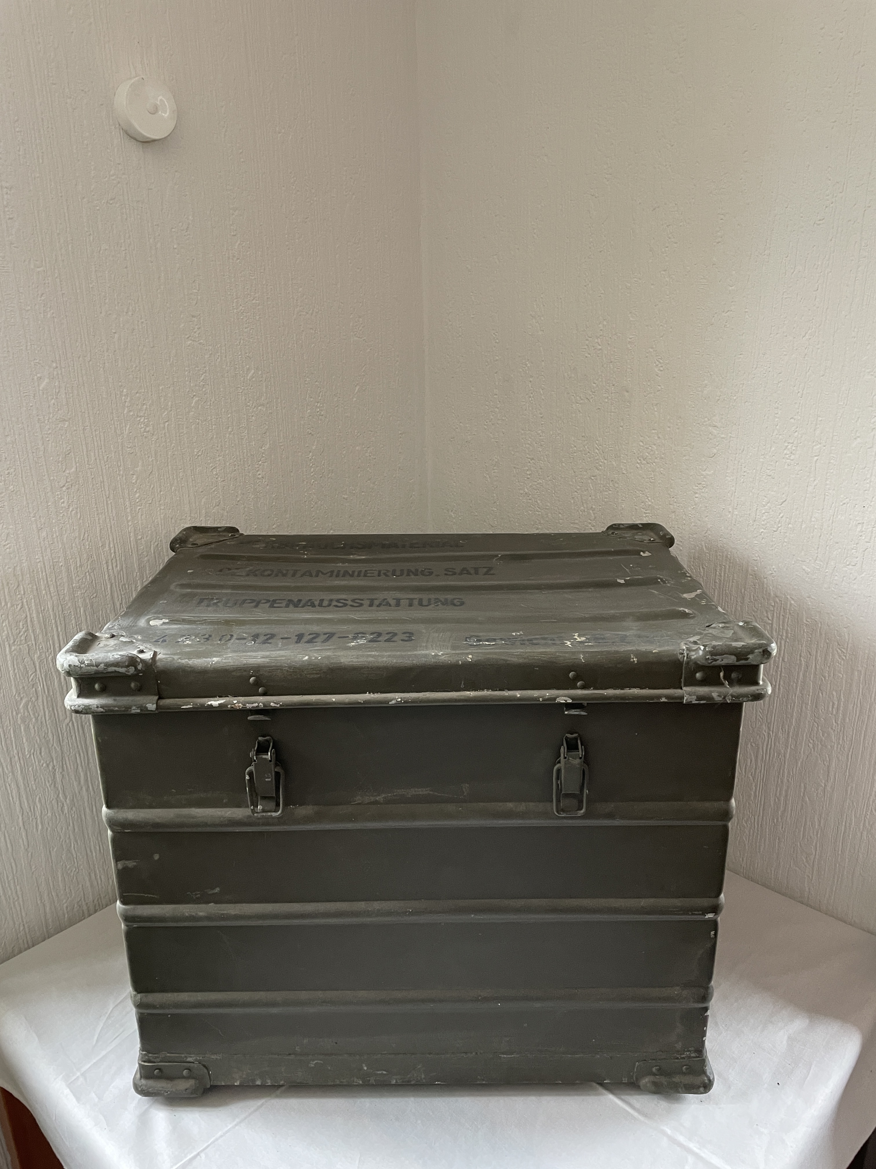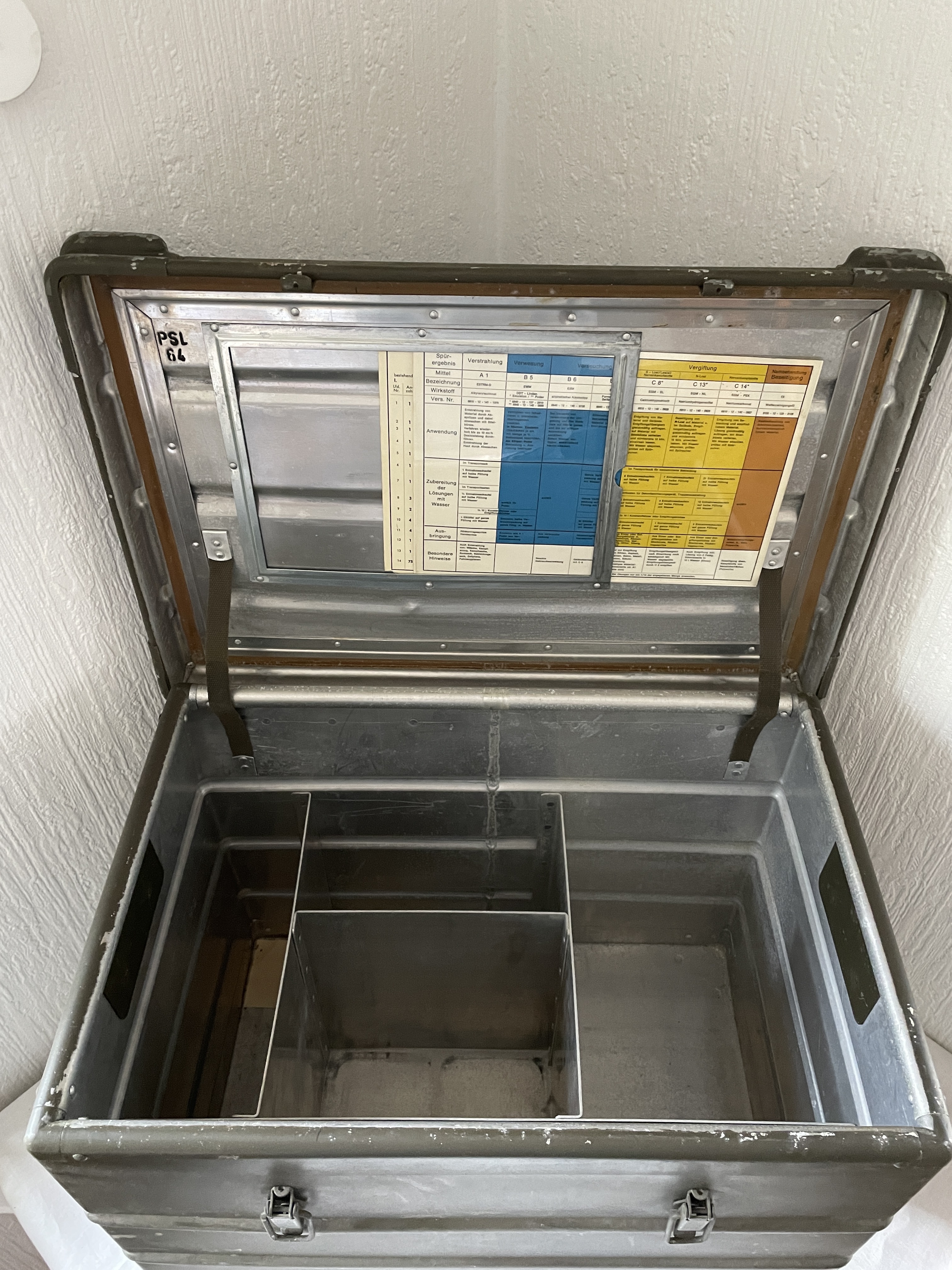 Die Kisten wurden verwendet um Dekontaminationsausrüstung zu transportieren und haben die Einsätze noch verbaut.