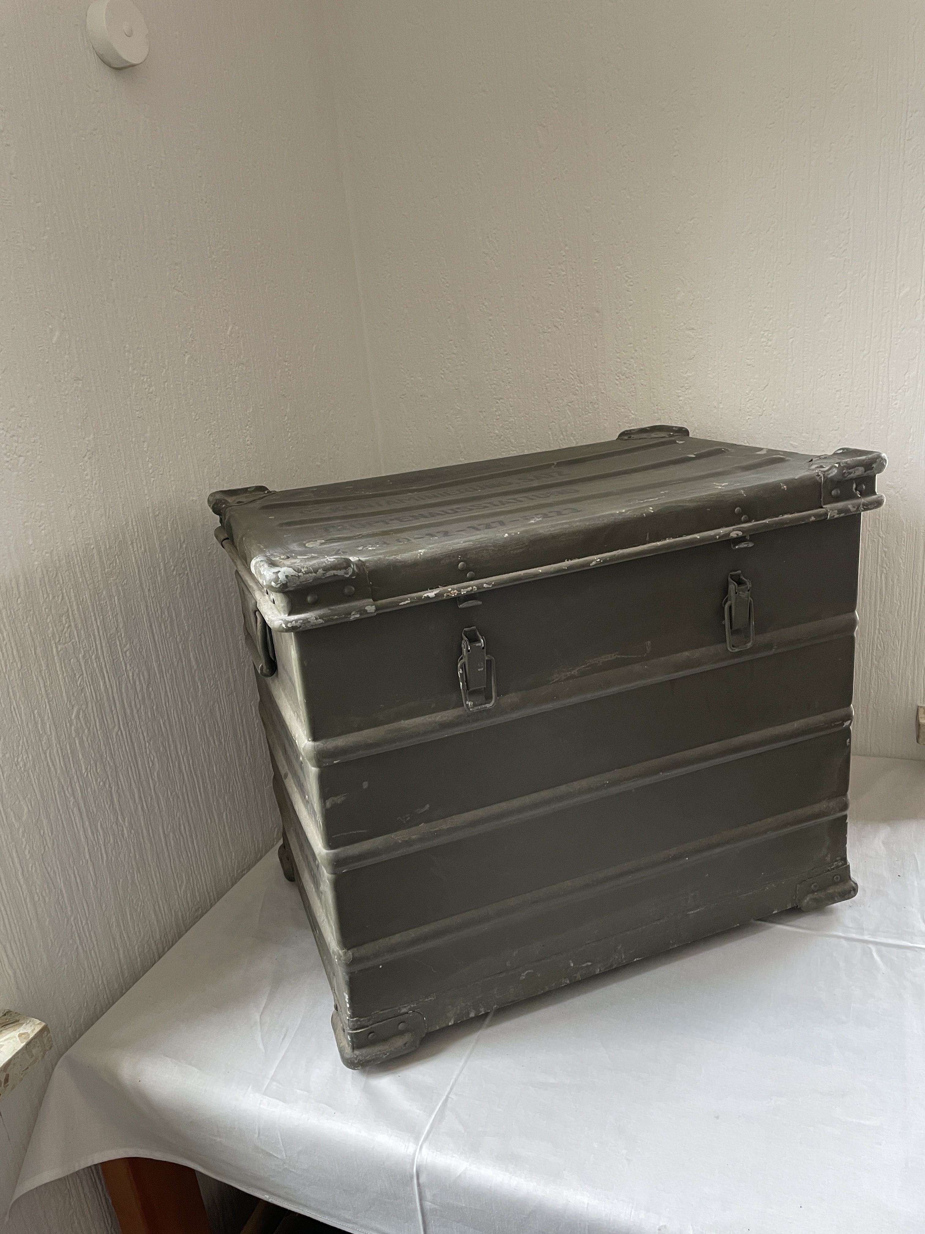 Die Kisten sind gebraucht, mit diversen Beschriftungen (RotesKreuz/Sauerstoff/Lachgas/Streckverband etc.), evtl. mit Lackschäden (siehe Foto)