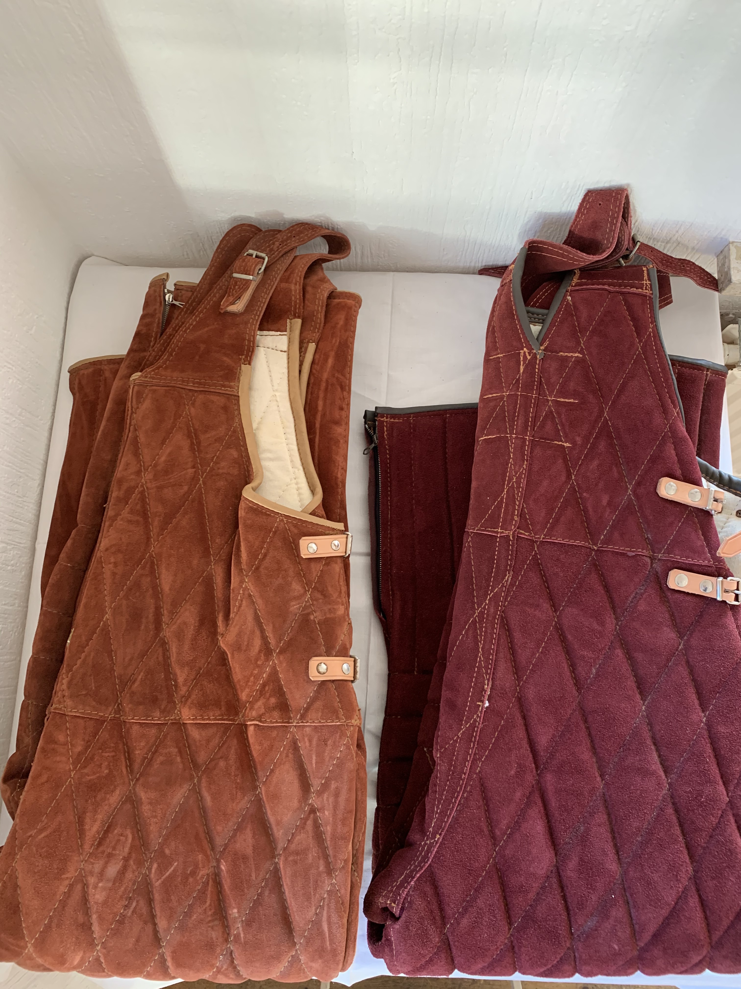 Gepolstert, Obermaterial Velourleder in Braun, grau und weinrot.