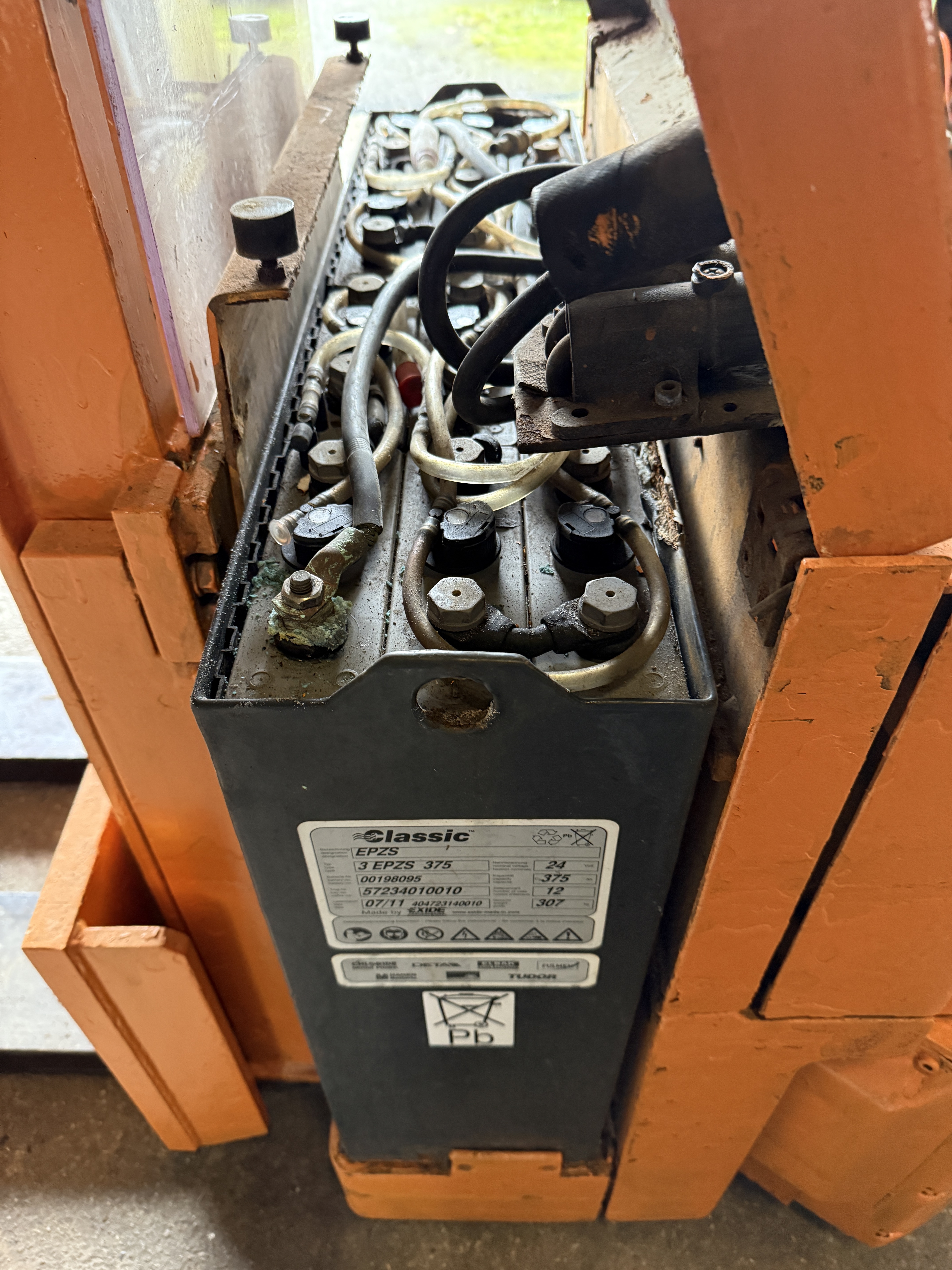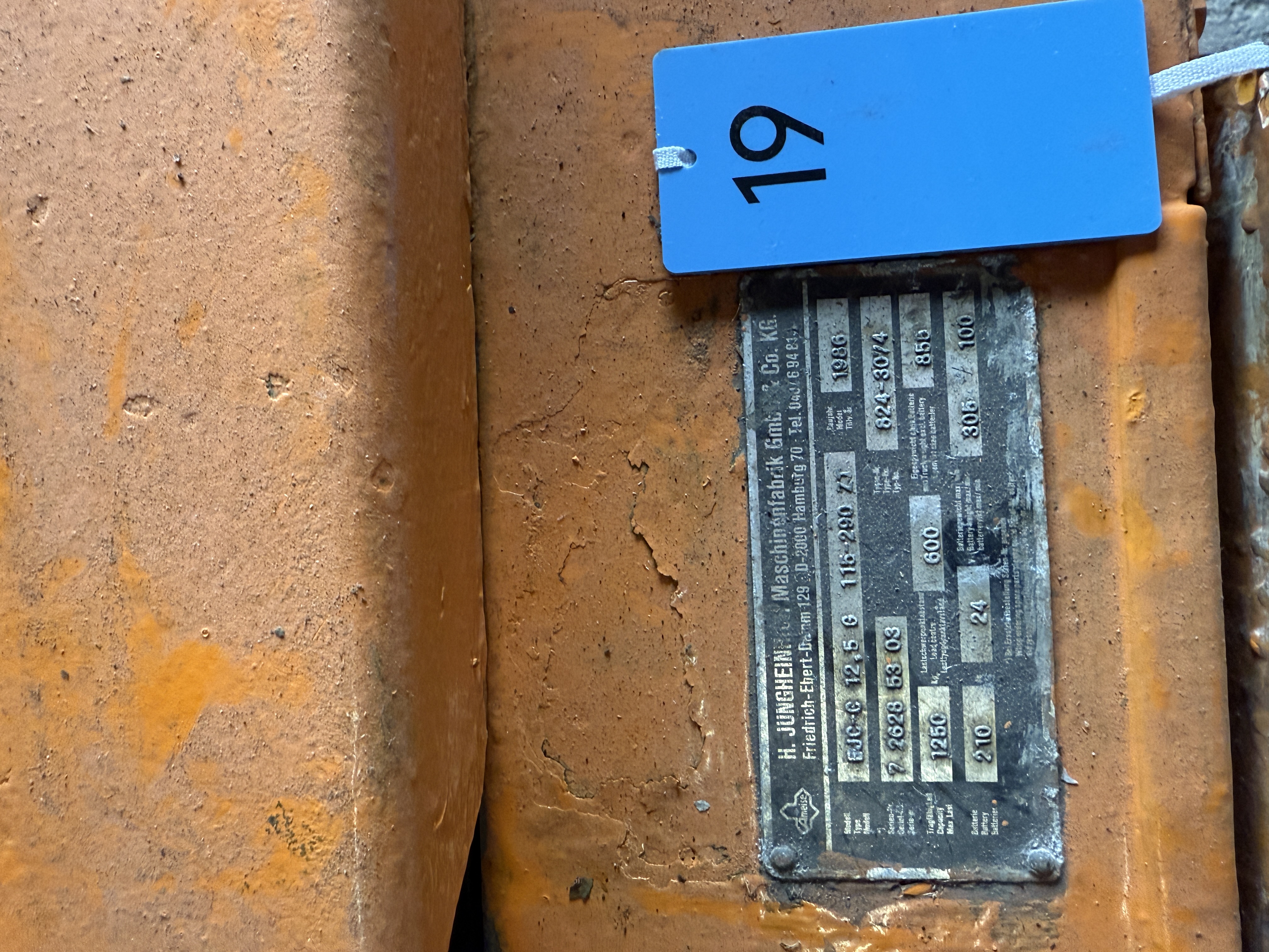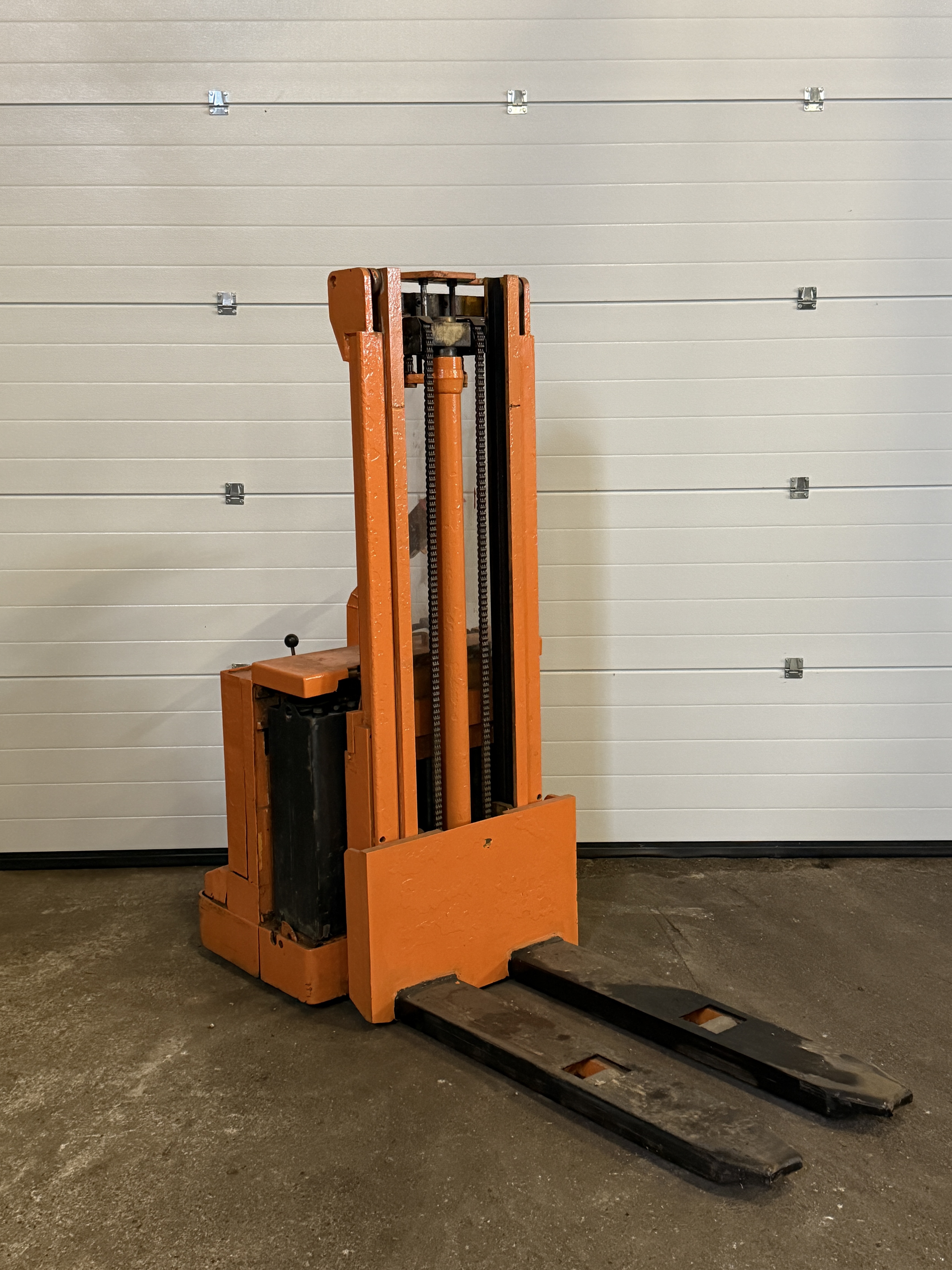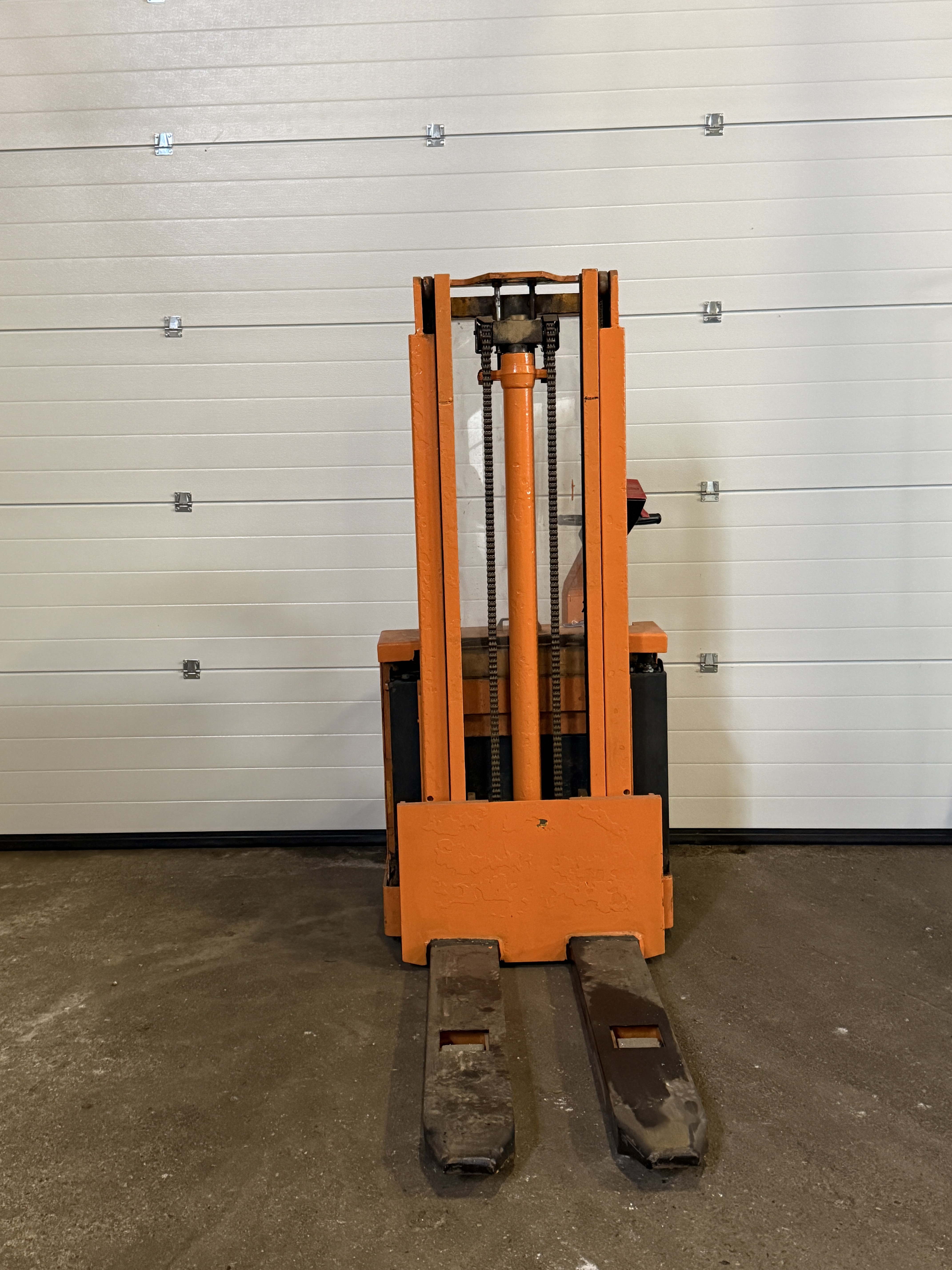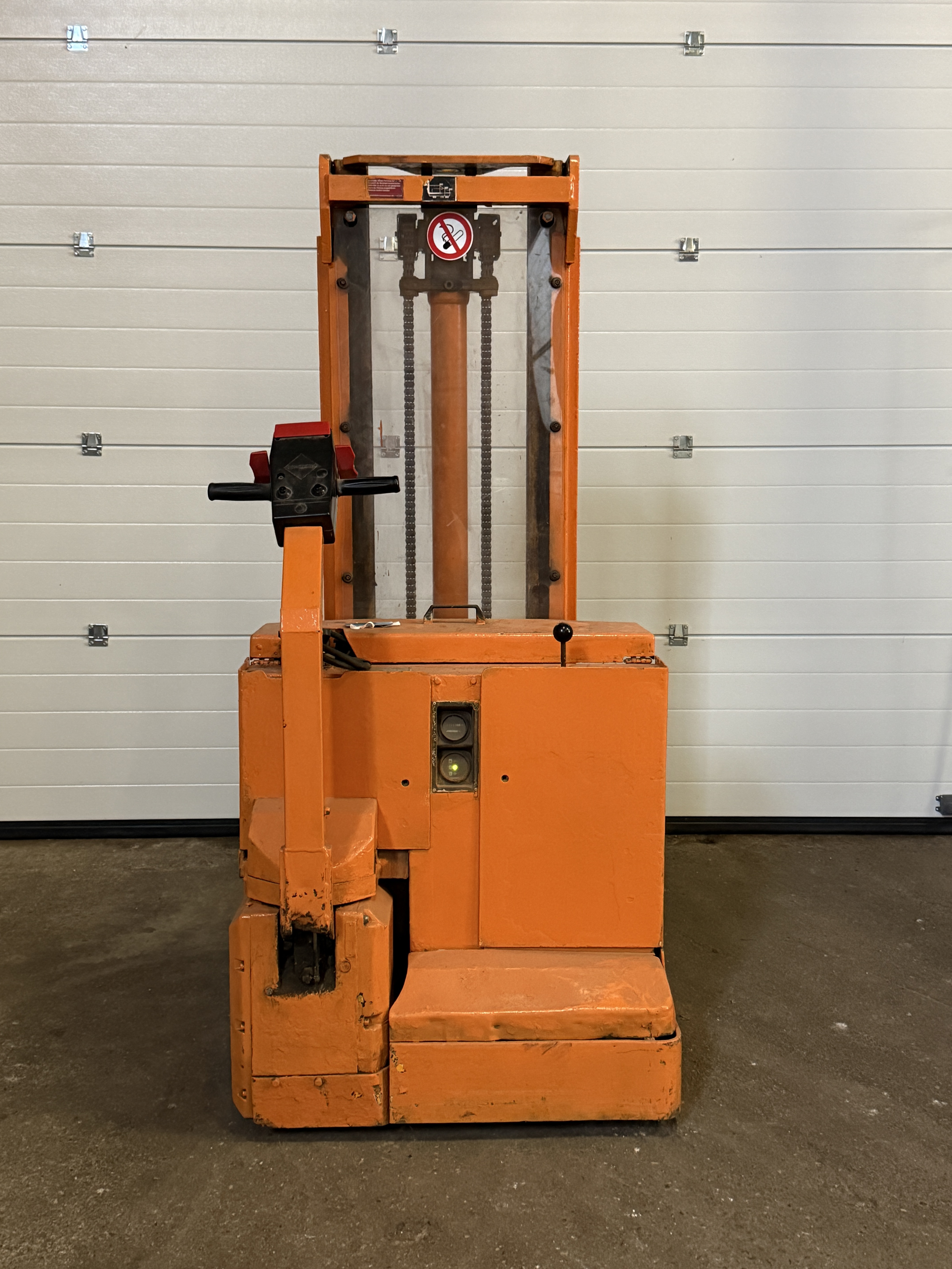 Fronthochhubwagen, Elektroantrieb, 1,25to Tragkraft, Ident-Nr.: 726285303, Baujahr 1986, 3688 Arbeitsstunden, 191 cm Bauhöhe, Hubhöhe 280 cm, ca. 15 cm Freihub (ausreichend für eine Palette), Duplexmast, Gabellänge 115 cm, Batterie aus 07/2011