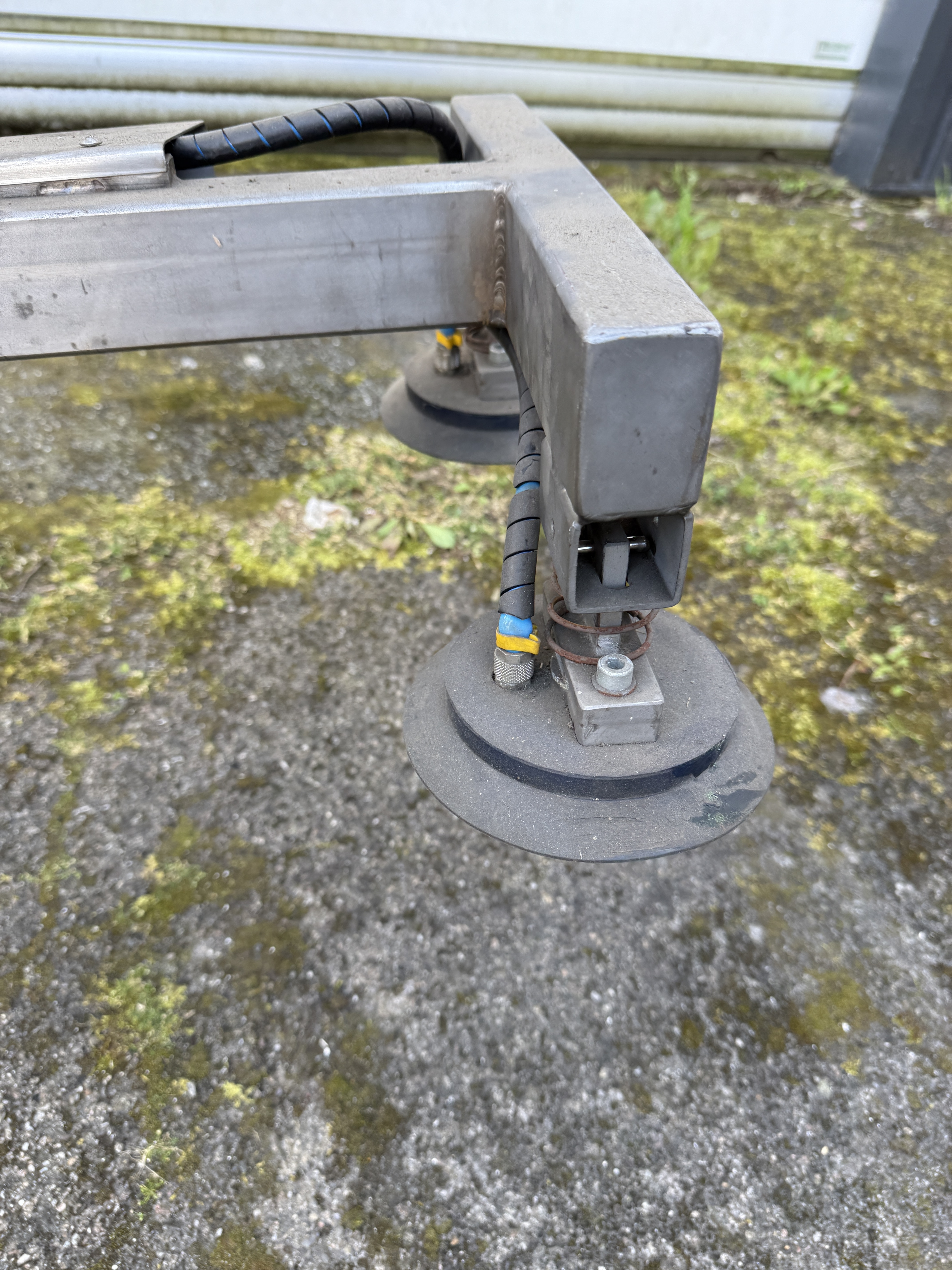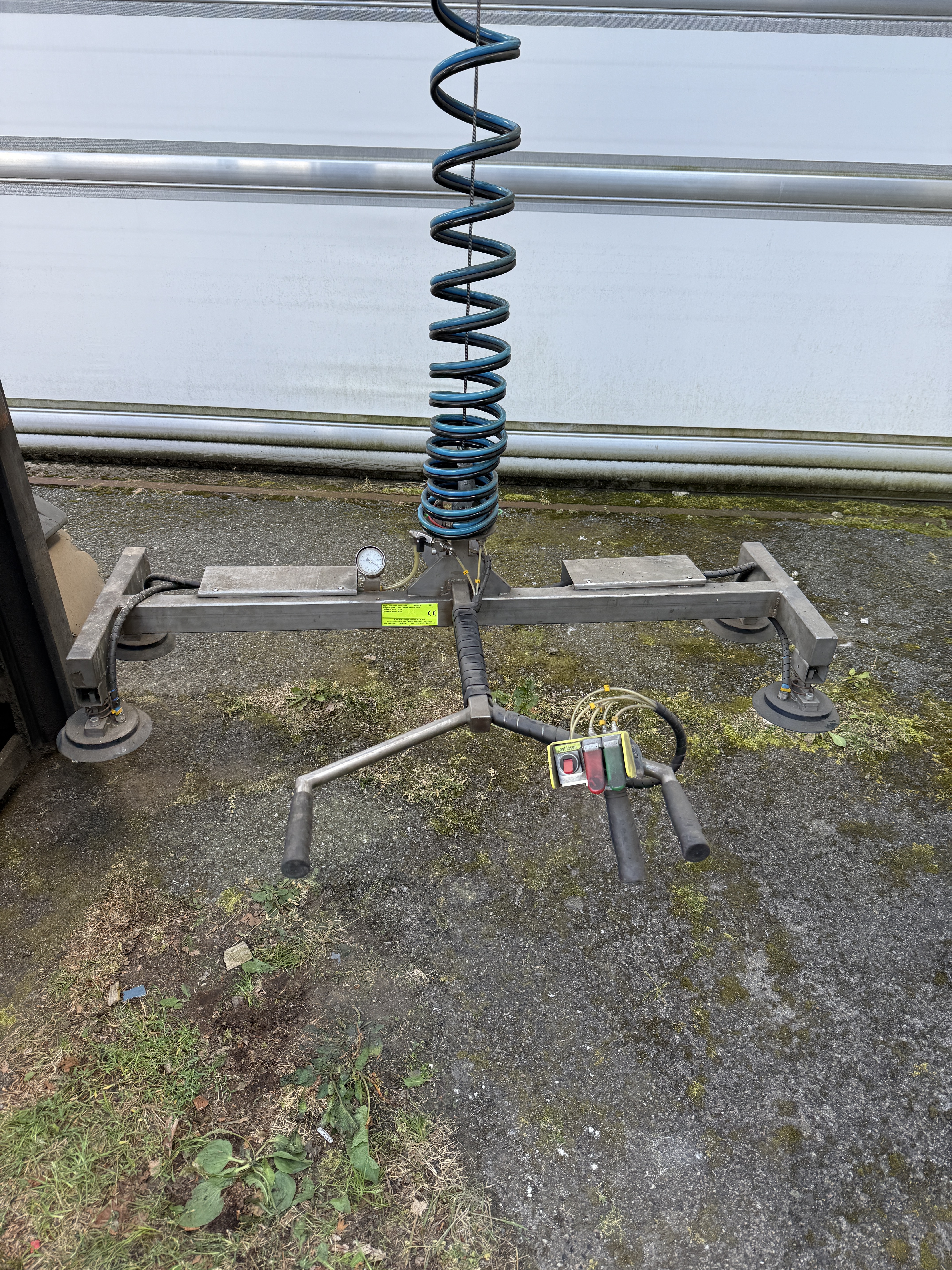 Die Seilwinde hat eine Tragkraft von 225 KG und der Vakuumheber von 110 KG, bei benötigten 7 bar Luftdruck.