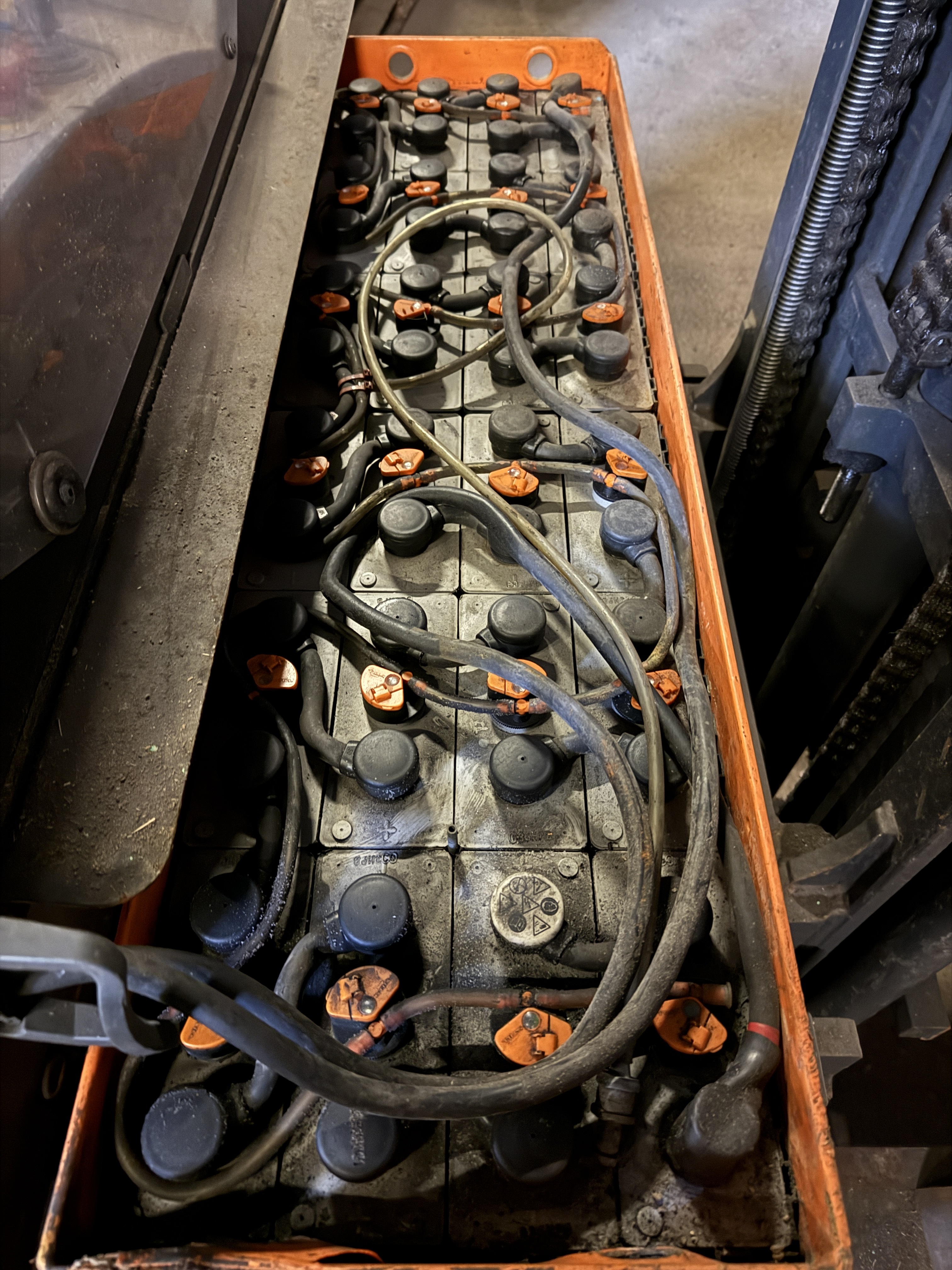 Schubmaststapler, Elektroantrieb, ________Tragkraft, Ident-Nr.: 611881000882, Baujahr ________, 8565 Arbeitsstunden, 226 cm Bauhöhe, Hubhöhe 500 cm, 166 cm Freihub, Triplexmast, Seitenschub, Schutzdach, Gabellänge 120 cm, Batterie i.O., kein Typenschild vorhanden